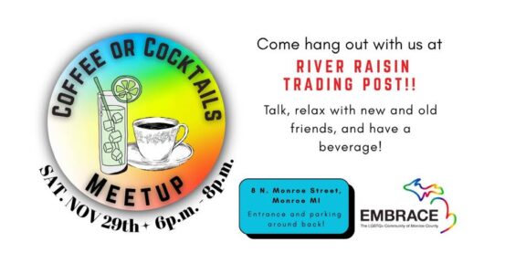 Visit The Conservatory at 21 West First St. Monroe, MI 48161. LGBTQ+ residents and allies are welcome to get together to discuss life and build a sense of community in Monroe County. NO RSVP is needed. Just stop out and join the fun.