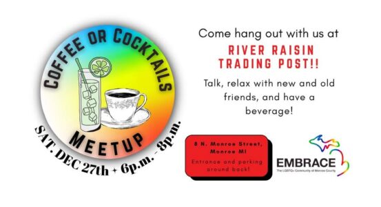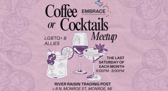 Visit The Conservatory at 21 West First St. Monroe, MI 48161. LGBTQ+ residents and allies are welcome to get together to discuss life and build a sense of community in Monroe County. NO RSVP is needed. Just stop out and join the fun.